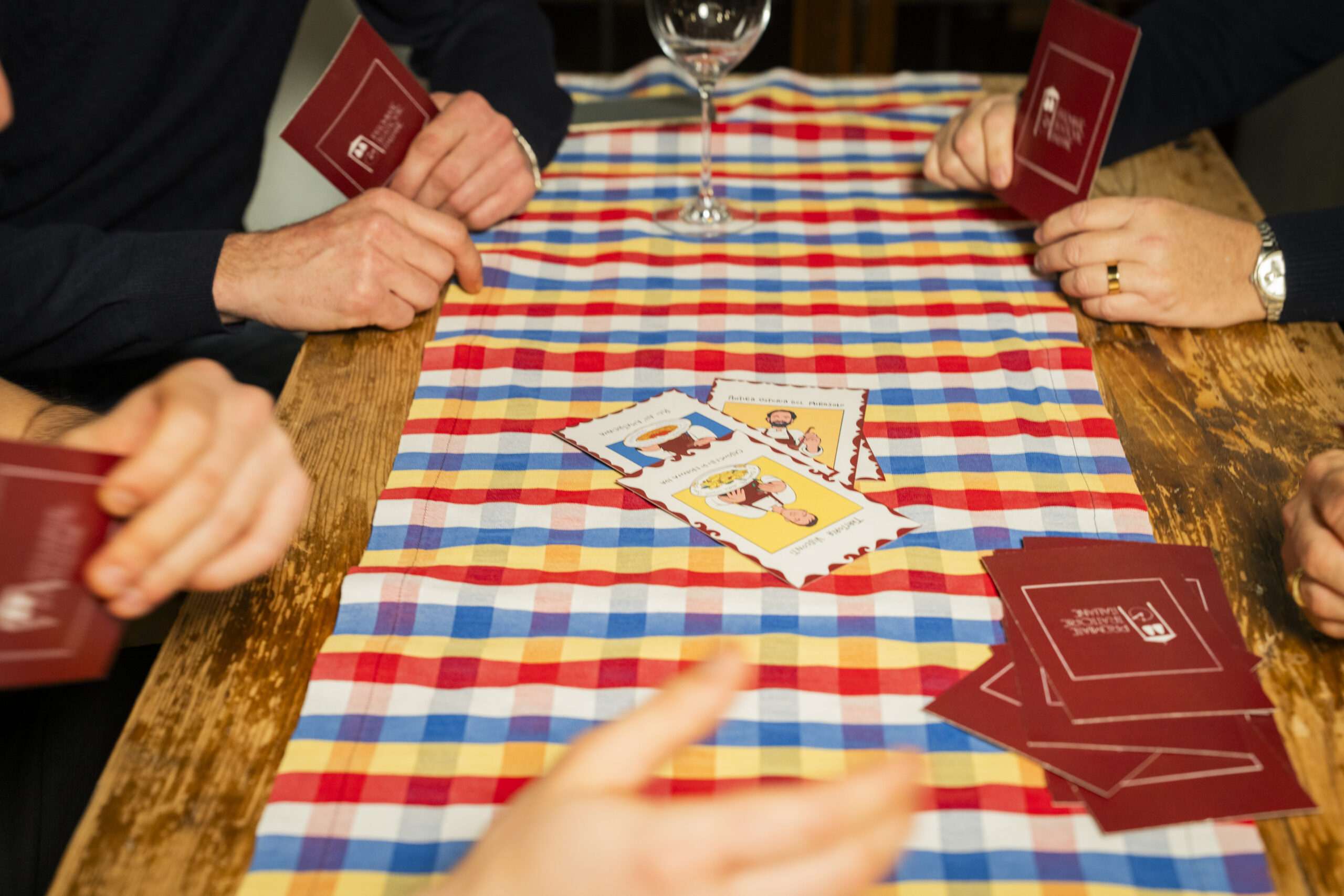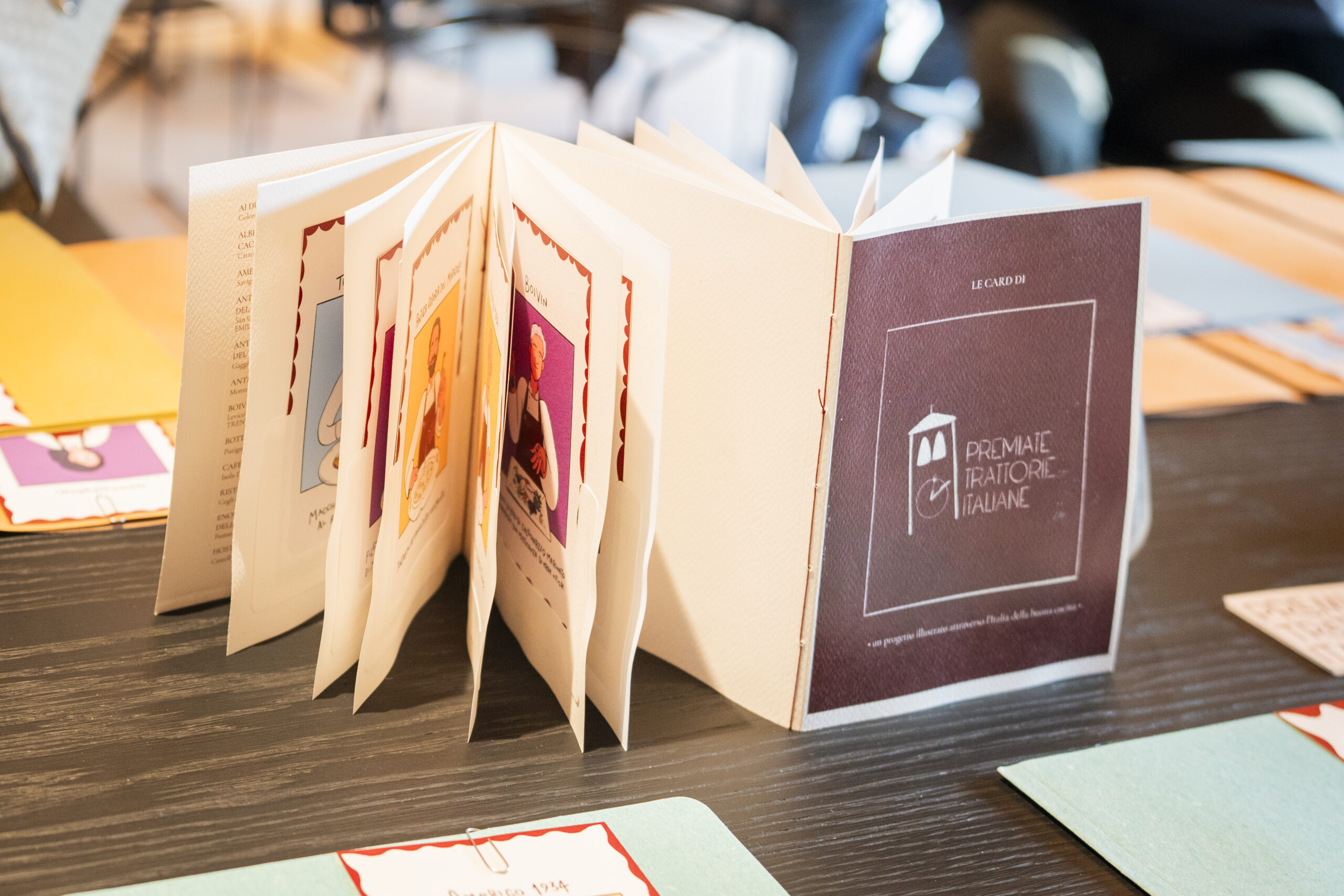 Un’altra bella iniziativa è la campagna di comunicazione nata dalla collaborazione con l’illustratrice Sara Di Giovanni in arte Sara La Ruzza: abbiamo ideatto e dato vita ad una serie di cards rappresentative delle nostre attività, ognuna raffigurante un personaggio ed un piatto simbolo di ogni trattoria. Colorate e divertenti sono da collezionare e potranno essere raccolte in un album artigianale creato dalla tipografia cartotecnica Cartabianca di Chiavari.